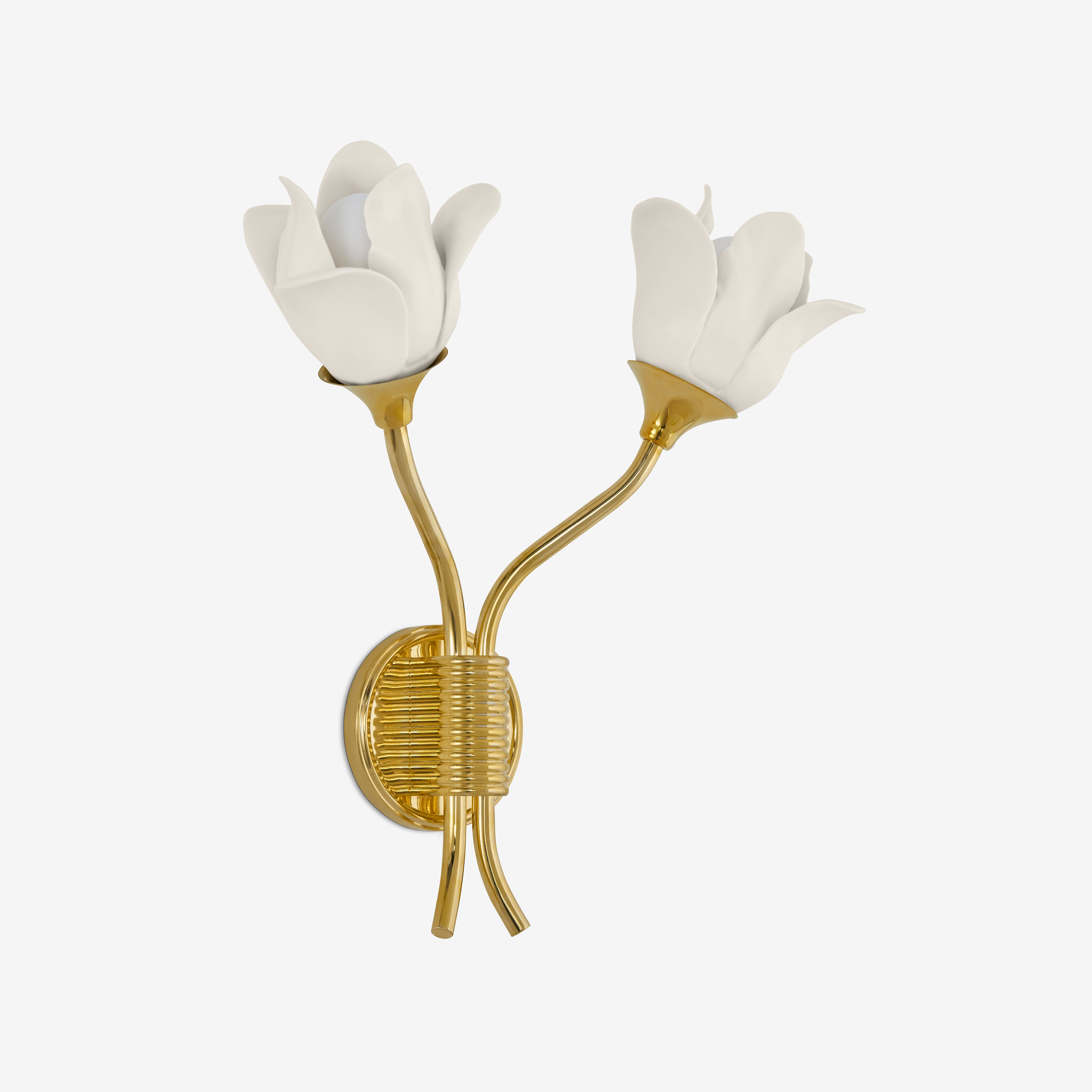Years ago, a delicate porcelain flower discovered in an Italian ceramics workshop sparked the exploration of how that organic shape might evolve within our collection. What began as a single inspiration has since unfolded into a full family of designs, from a simple sconce to a triple flushmount, each offering its own interpretation.